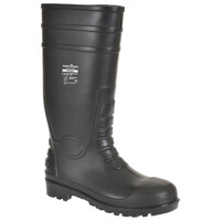 Safety Wellingtons are manufactured from virgin PVC/Nitrile in a seamless watertight construction. Features include a 200 joule steel toecap, slip resistant outsole, antistatic, washable nylon lining and kick off spurs. Ideal for use in a wide range of environments and industries.